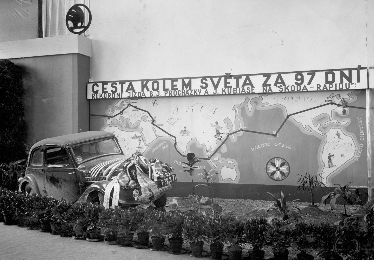 Vào ngày đầu tiên của tháng 8 năm 1936, chiếc Skoda Rapid bán mui trần màu xanh đậm đã hoàn thành chặng đường về nhà của chuyến đi vòng quanh thế giới. Mặc dù chiếc xe đã đi được 98 ngày, nhưng lịch cho thấy chỉ 97 ngày đã trôi qua. Đó là bởi vì Břetislav Jan Procházka, một doanh nhân đến từ Praha và Jindřich Kubias, đồng sở hữu một công ty thịt hun khói, đã kiếm được một ngày khi đi du lịch về phía đông.